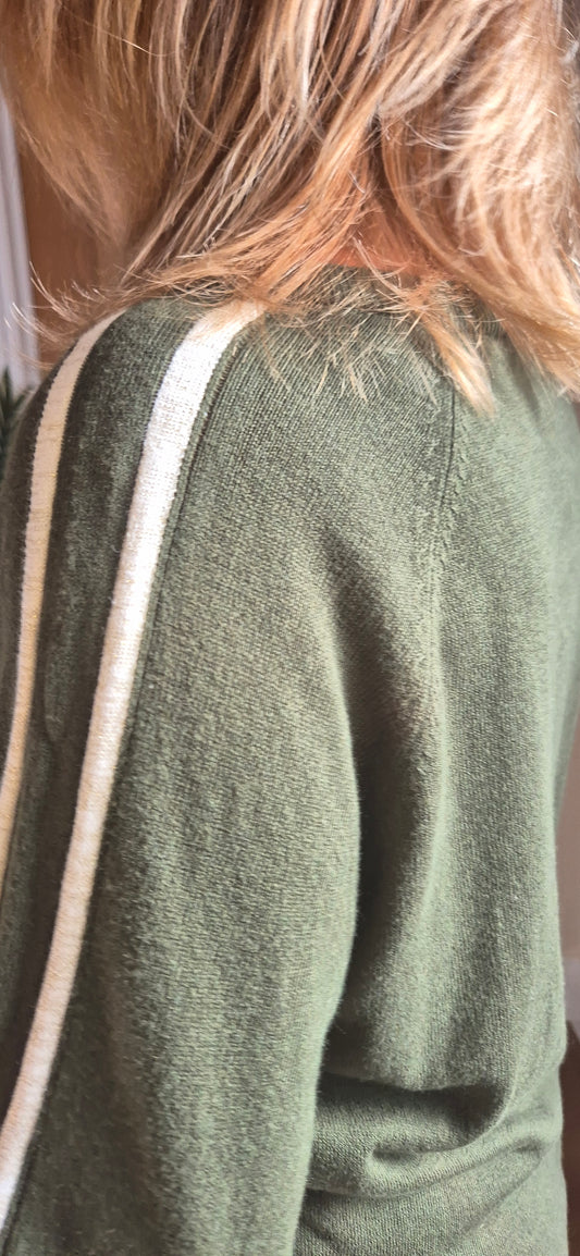 Talia Sweater – V-Neck Stripe Sleeve Knit