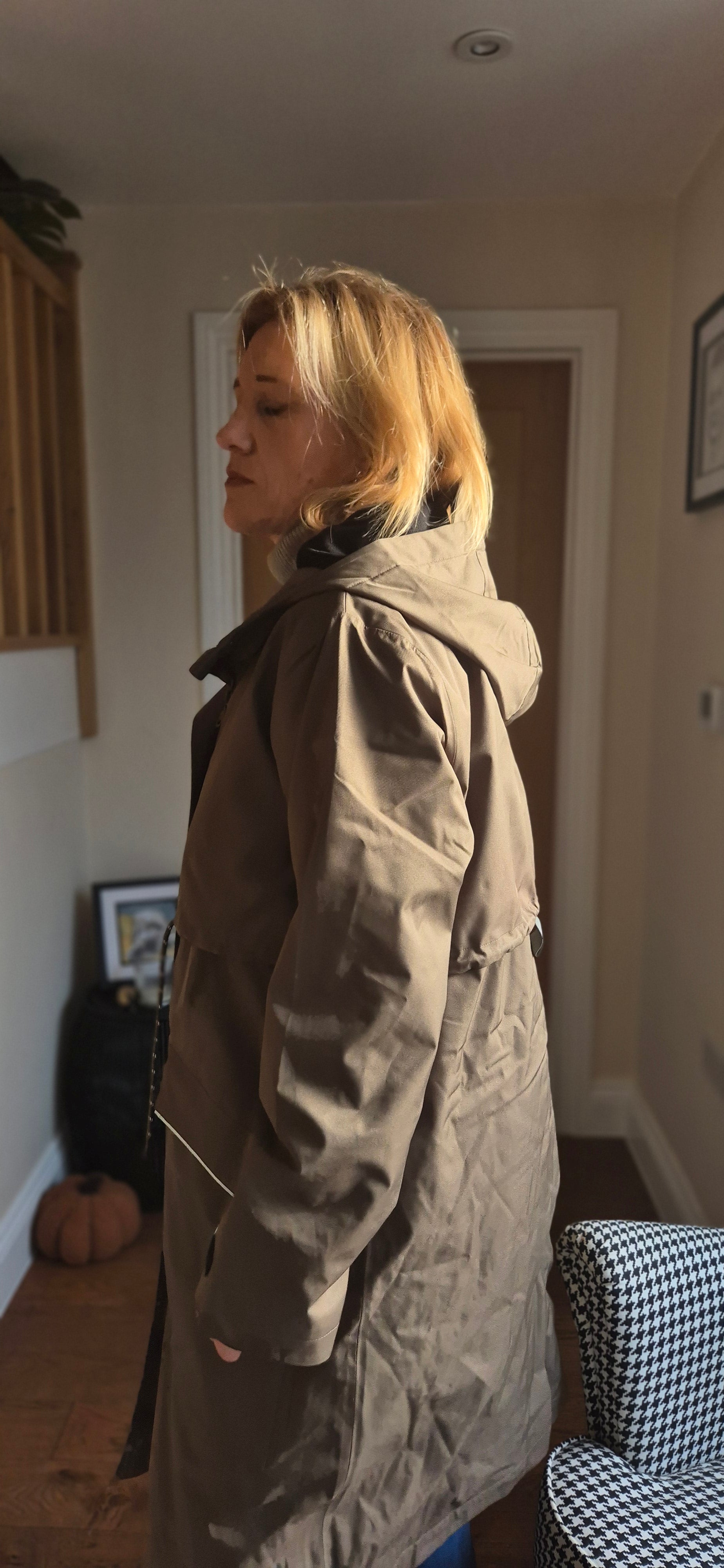 Crafted in a sophisticated mushroom brown tone with contrasting black trim, the Raily offers a modern, polished look while keeping you cosy and protected from the elements. The optional drawstring waist flatters your shape, and the lightweight yet warm fabric ensures comfort without bulk. With its knee-length silhouette and hooded design, it’s the perfect piece for layering over your everyday outfits — rain or, well rain really!
